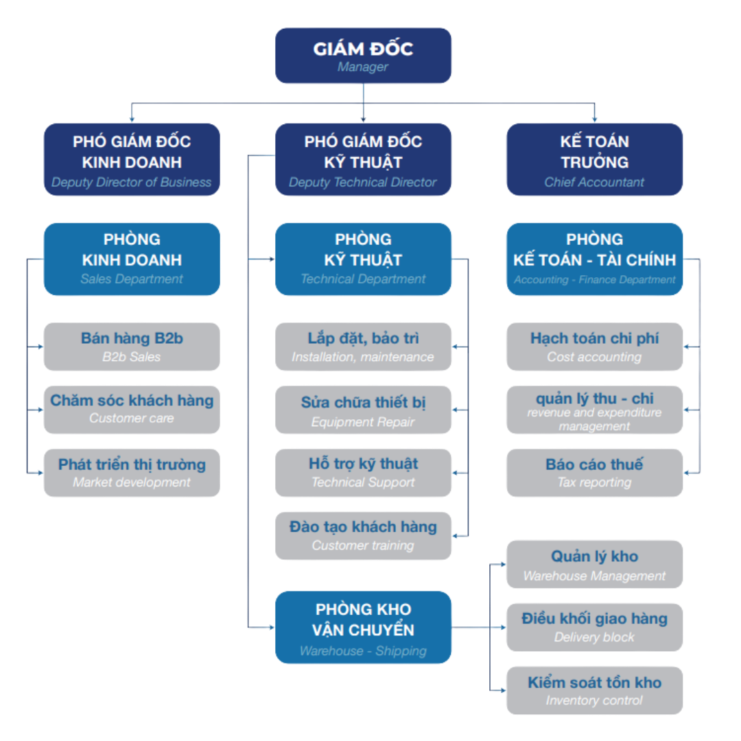 Ðội ngũ nhân viên có trình độ chuyên môn cao, am hiểu sản phẩm và quy trình kỹ thuật, luôn sẵn sàng tư vấn - hỗ trợ khách hàng tối ưu hóa hiệu quả vận hành. Công ty chú trọng đào tạo nội bộ định kỳ, kết hợp với chuyên gia từ đối tác quốc tế nhằm nâng cao chất lượng dịch vụ và năng lực cạnh tranh bền vững.