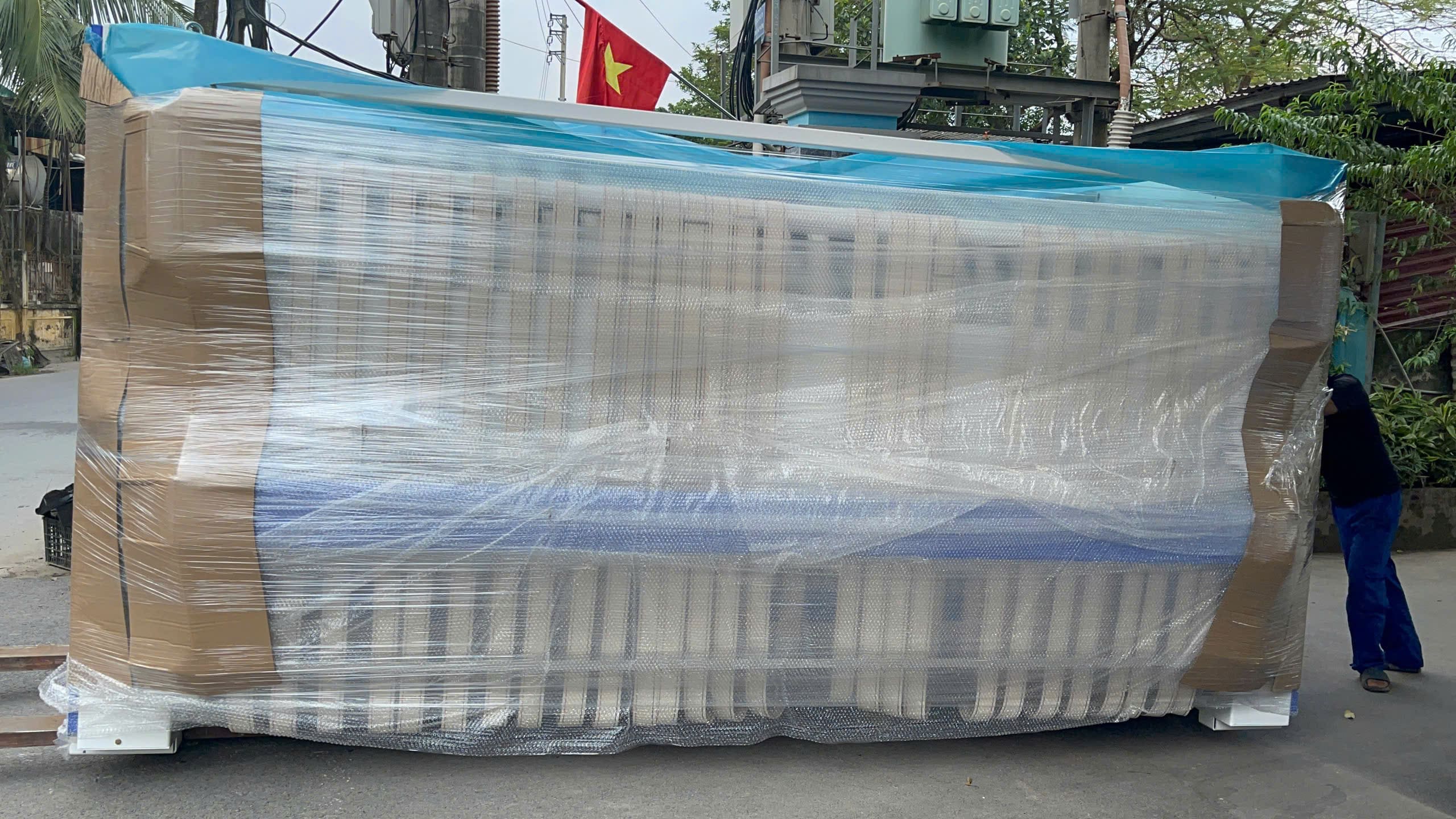 Trước khi rời khỏi kho, dàn máy giặt sấy công nghiệp được kiểm định nghiêm ngặt bởi các kỹ sư của CleanChem Việt Nam. Mọi chi tiết đều được rà soát cẩn thận để bảo đảm thiết bị hoạt động ổn định và đạt hiệu suất tối đa. Sau khi hoàn tất kiểm tra, máy được đóng gói, bọc nhiều lớp chống trầy xước và chống ẩm, sẵn sàng cho hành trình bàn giao đến khách hàng một cách an toàn, trọn vẹn nhất.