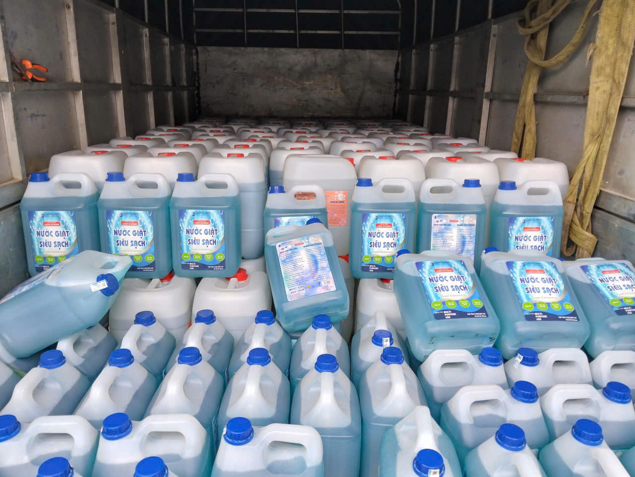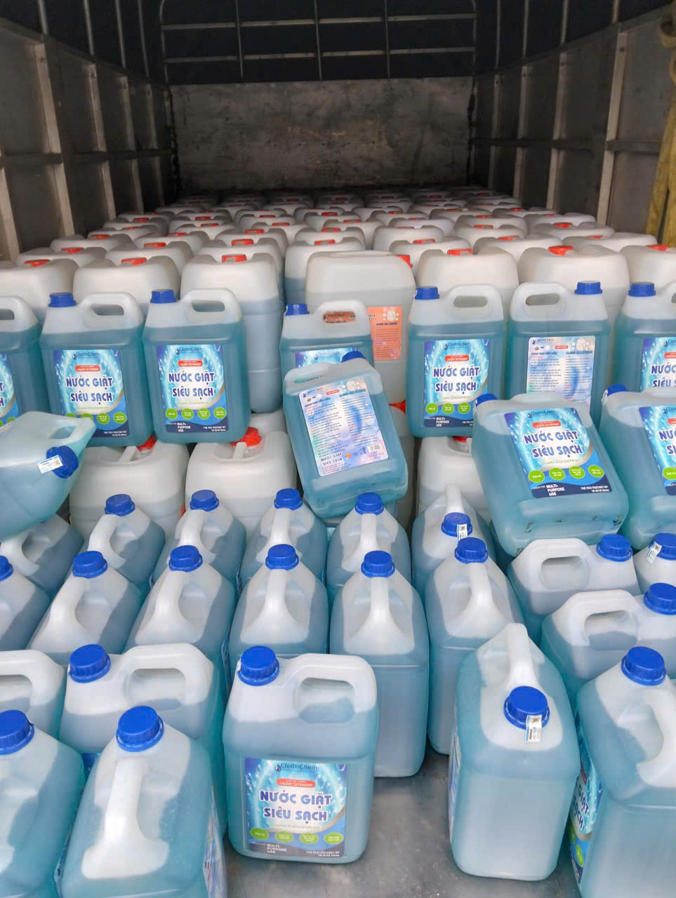 Không chỉ dừng lại ở việc hoàn thiện lắp đặt dàn máy giặt sấy công nghiệp, khách hàng còn tiếp tục tin tưởng lựa chọn hơn 100 can nước giặt Siêu Sạch – sản phẩm do CleanChem Việt Nam trực tiếp sản xuất và phân phối chính hãng.