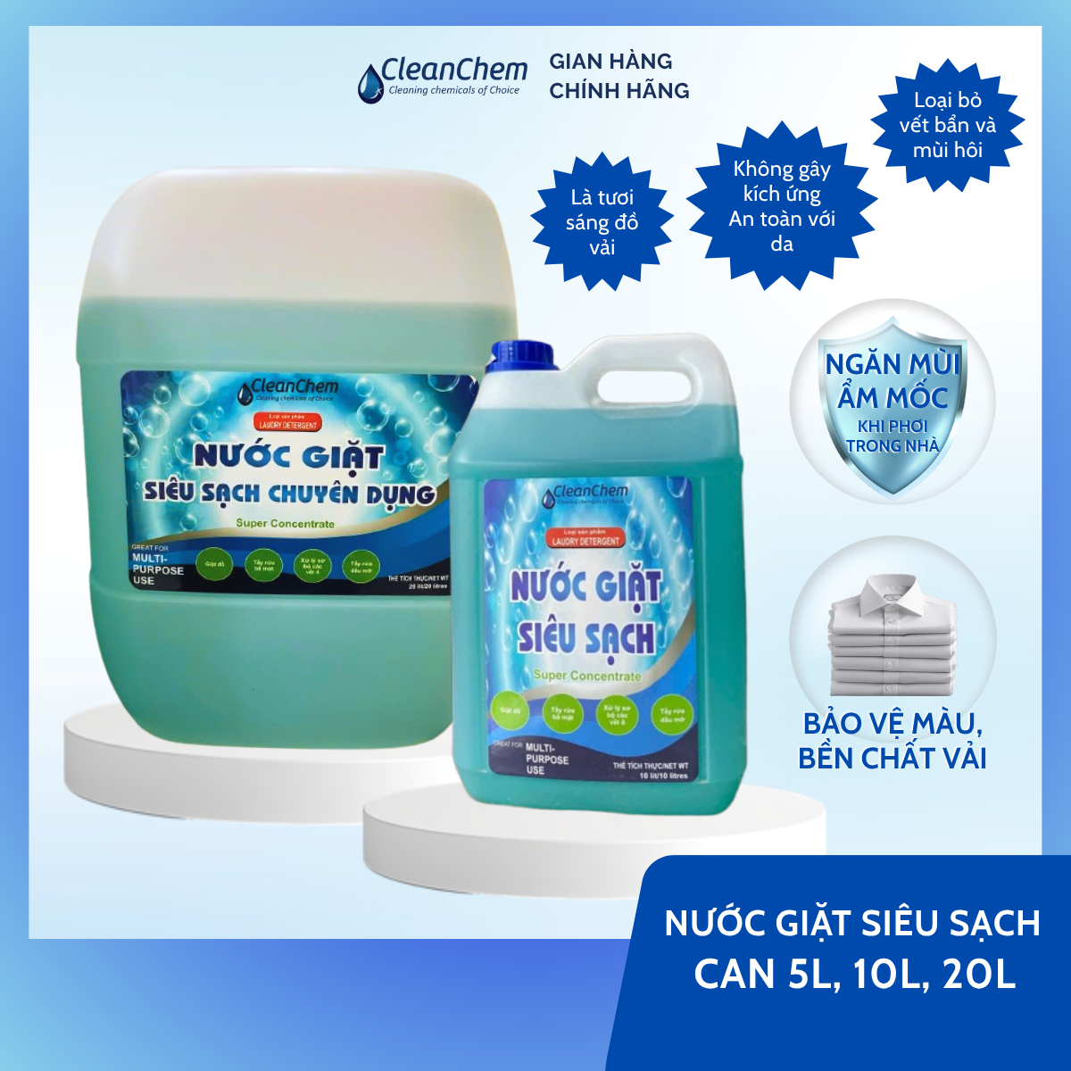 Đây là dòng nước giặt chuyên dụng cho hệ thống giặt công nghiệp, giúp làm sạch hiệu quả, bảo vệ sợi vải và đảm bảo tiêu chuẩn vệ sinh cao nhất. Việc khách hàng tiếp tục đặt mua số lượng lớn là minh chứng rõ ràng cho chất lượng sản phẩm và uy tín dịch vụ mà CleanChem mang lại.