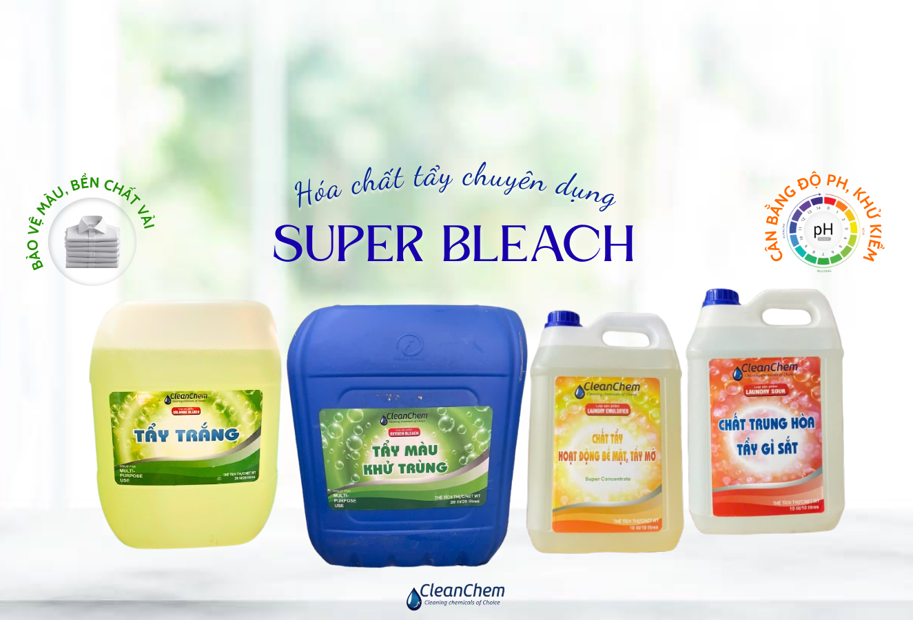 Hóa chất tẩy trắng gốc Chlorine - giải pháp hiệu quả trong việc làm trắng và khử trùng đồ vải, đặc biệt phù hợp với đồ vải trắng yêu cầu mức độ vệ sinh cao.