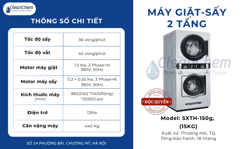 CleanChem là đơn vị phân phối chính hãng các dòng máy giặt, sấy, là công nghiệp và cung cấp giải pháp trọn gói từ bán hàng, vận chuyển đến lắp đặt, bảo hành.