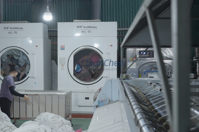 - Sử dụng hóa chất chuyên dụng: Không dùng bột giặt dân sinh nhiều bọt cho máy công nghiệp. Bọt quá nhiều sẽ trào ngược làm hỏng mạch điện tử và trục vòng bi. Hãy dùng nước giặt công nghiệp chuyên dụng ít bọt, có khả năng tẩy rửa mạnh do CleanChem cung cấp để bảo vệ máy.