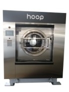 Lồng giặt và các tấm Panel bảo vệ đều được làm từ thép không gỉ Inox 304 chống ăn mòn hóa chất tuyệt đối. Khung thoát nước phía sau được thiết kế khép kín hoàn toàn, đảm bảo nước thải không bị tràn ra sàn, giữ môi trường xưởng giặt luôn khô ráo và đạt chuẩn ISO.