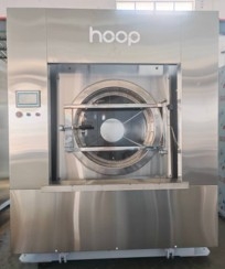 Toàn bộ lồng giặt, trục và các tấm panel bao quanh được làm từ thép không gỉ Inox 304. Khung thoát nước phía sau khép kín hoàn toàn, ngăn chặn ô nhiễm môi trường làm việc và rò rỉ hóa chất.