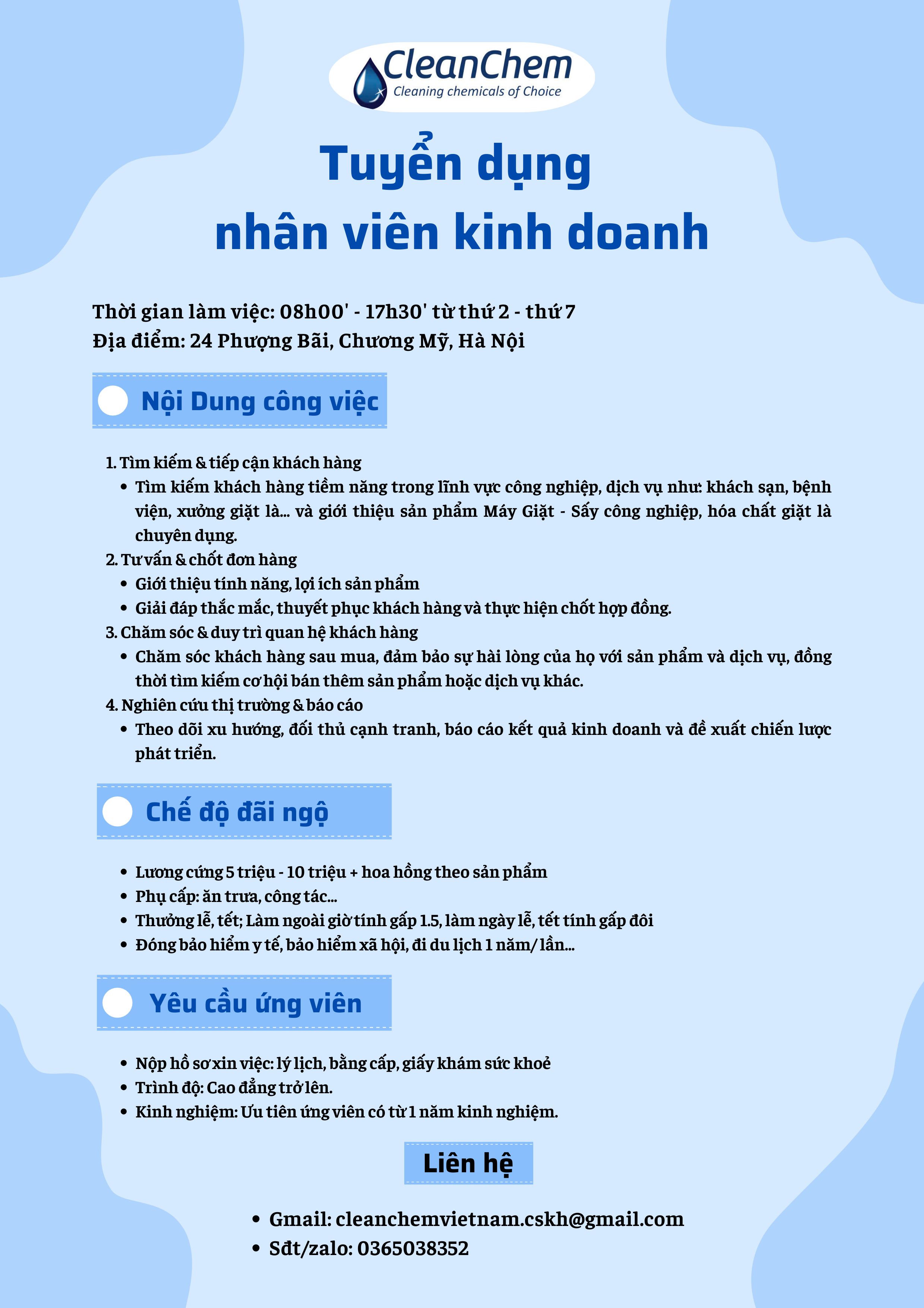 - Chăm sóc khách hàng sau bán hàng để đảm bảo sự hài lòng.